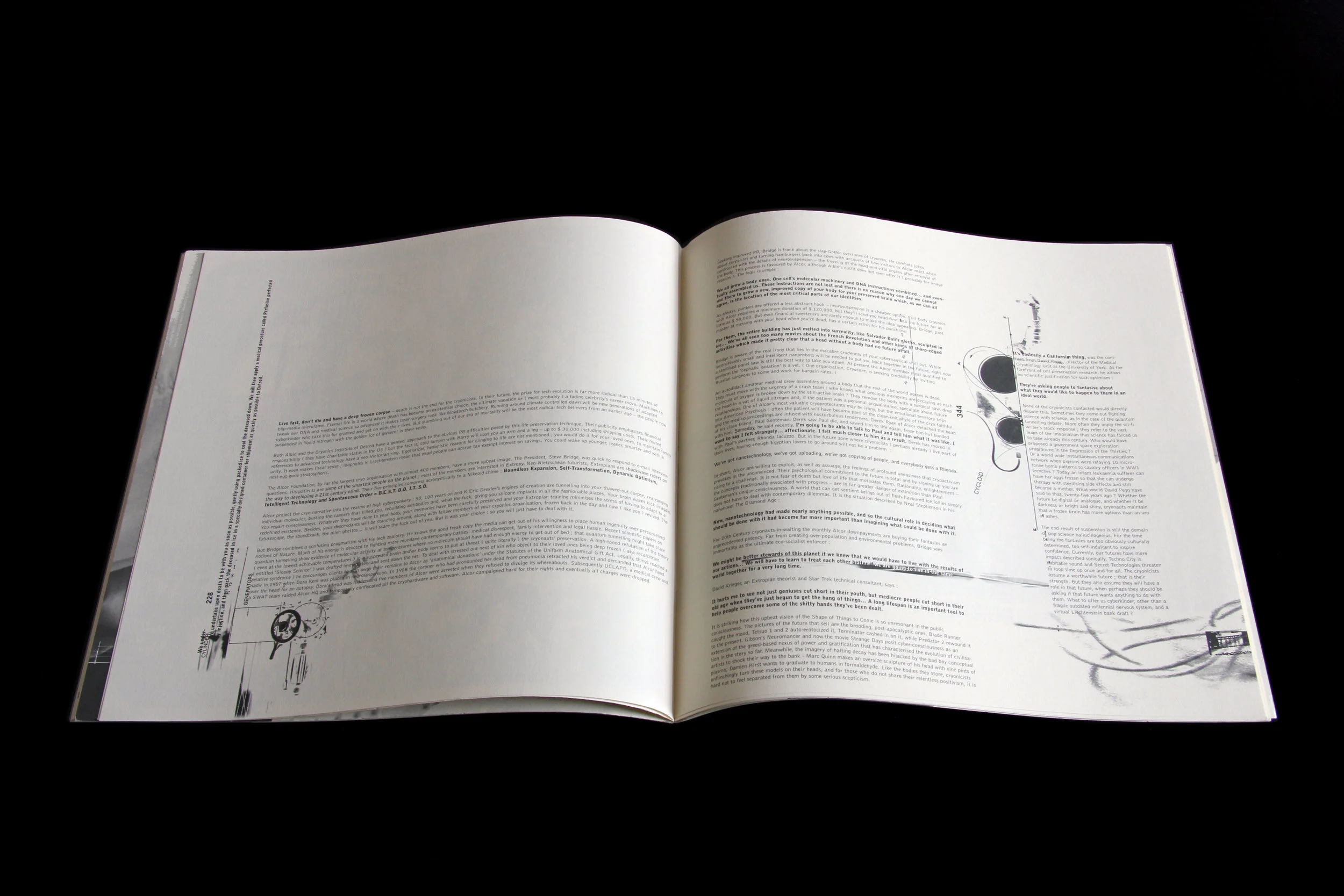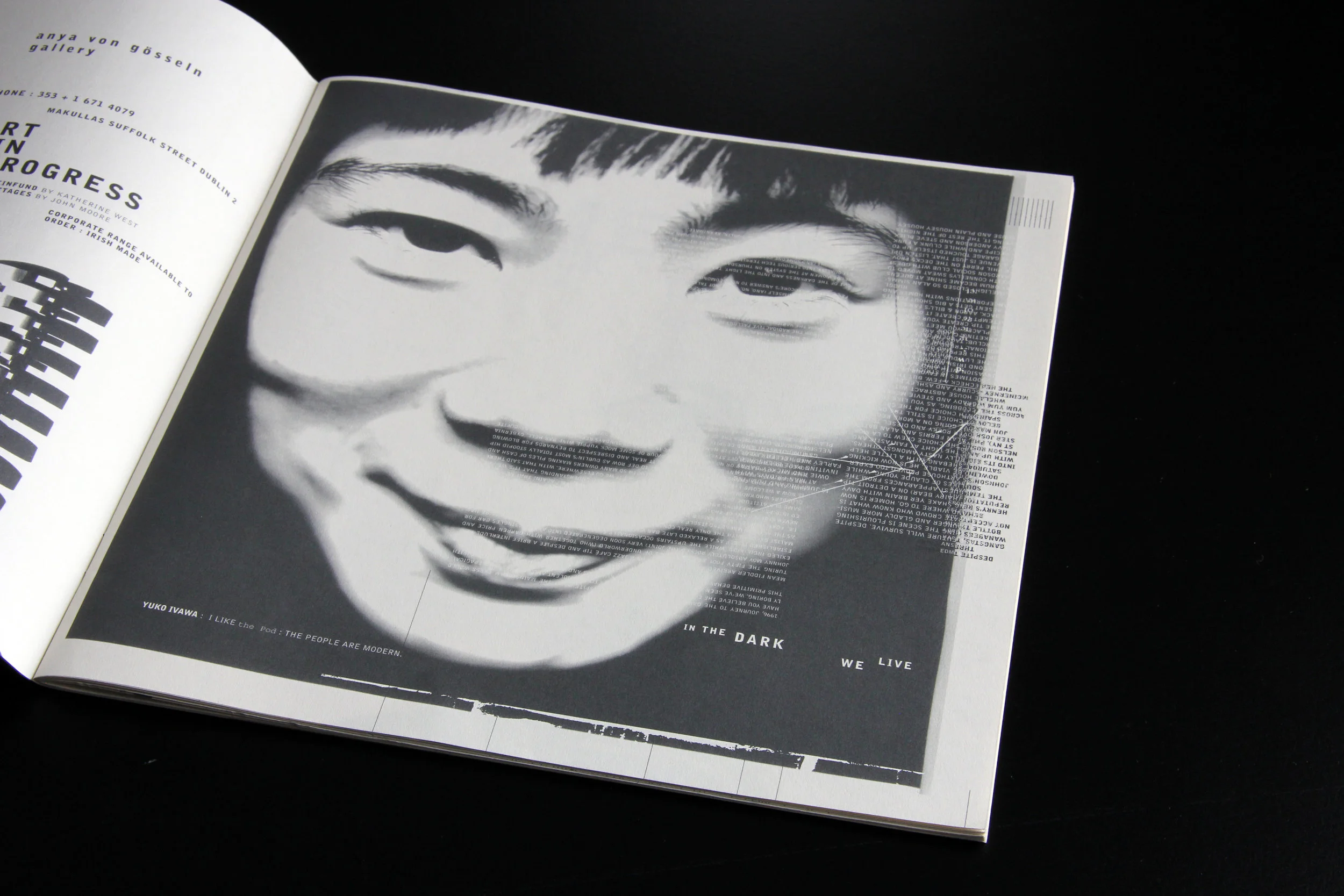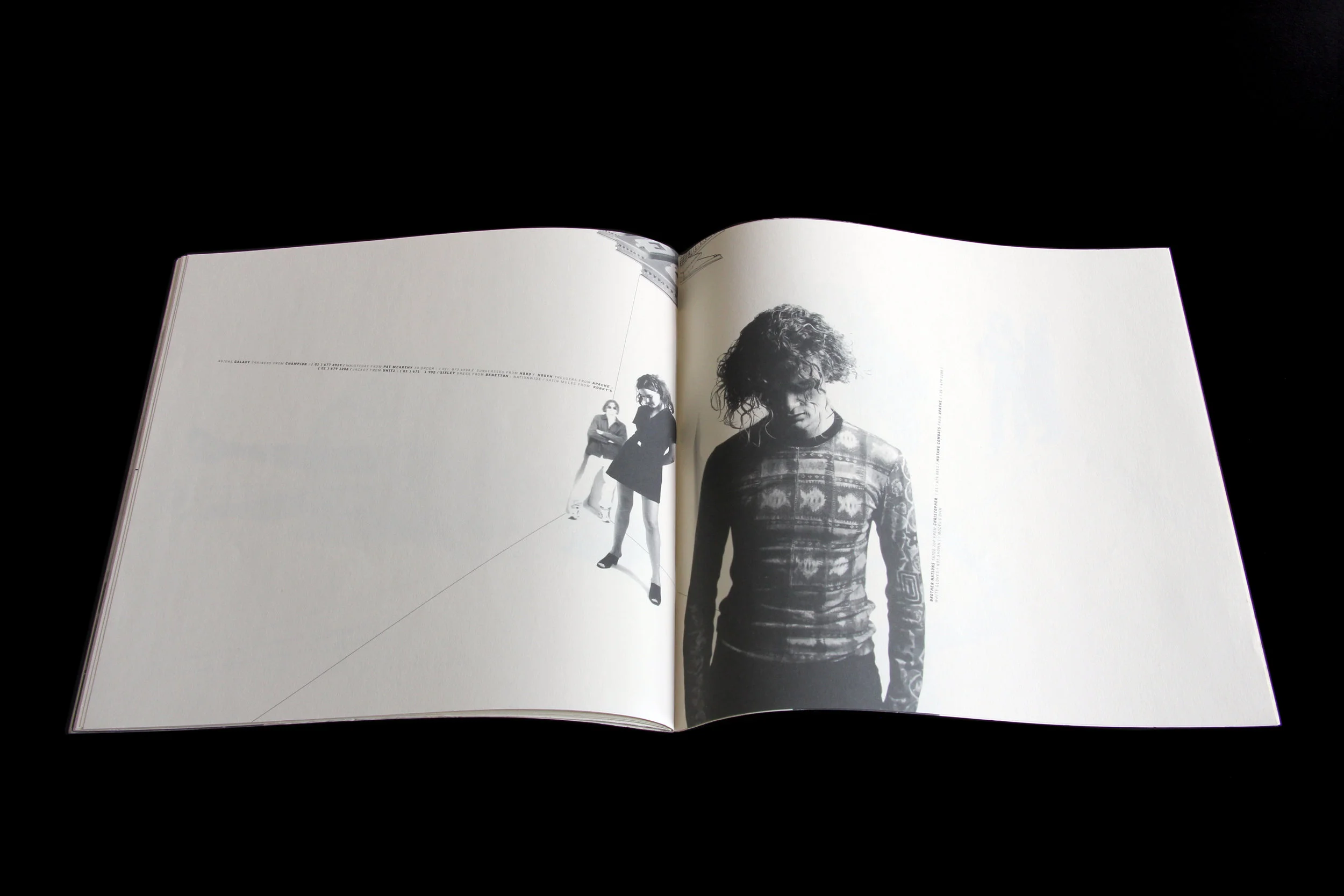 “CODE metaphorically and literally zooms in on the material, working on it in enormous detail, trying to see more and extract more. Text is atomised for its component words, characters and spaces, in search of integrated form and meaning. I am working in a sea of seven-point type, committed to the idea of using individual character forms in an expressive way, disregarding conventional typographic hierarchies. CODE is also to do with the technology. Made on a notvery- powerful machine with ludicrously small storage options (44MB SyQuest disks), working with large images isn’t practical, so I use fragments and build forms integrated with type.”